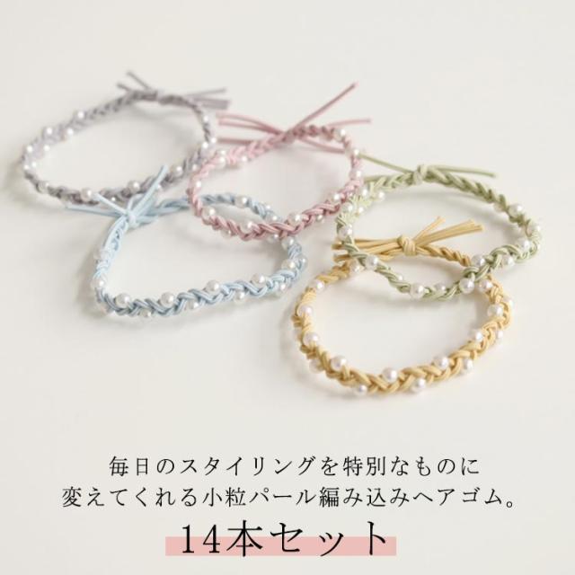 ビーズ パステルカラー 髪ゴム 細い ヘアアクセサリー パール編み込みヘアゴム 可愛い 14本セット キッズ 上品 髪飾り 大人 細め 通勤 小粒パール おしゃれ パール編み込みヘアゴム 大人っぽい