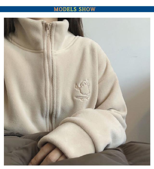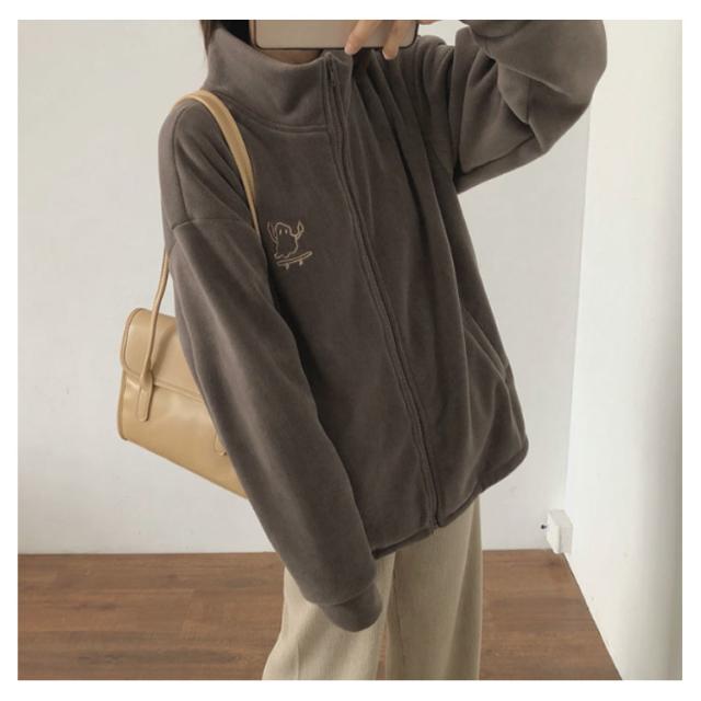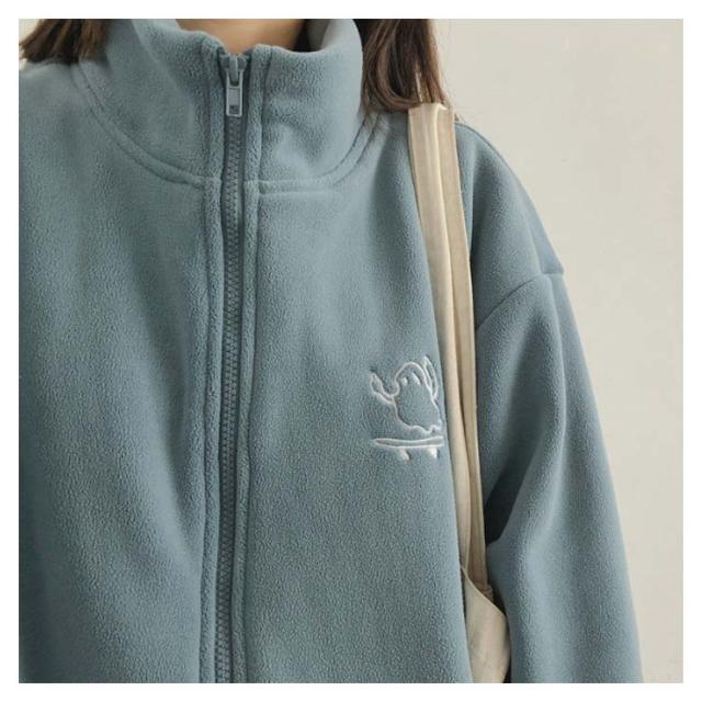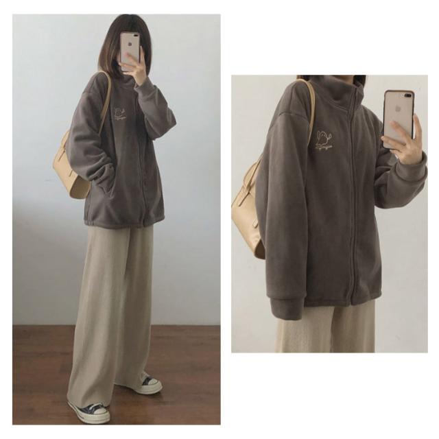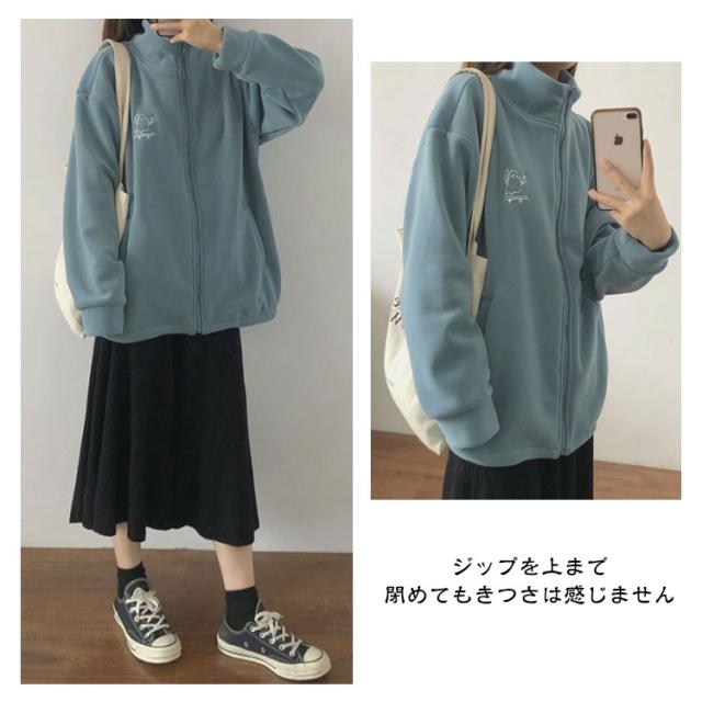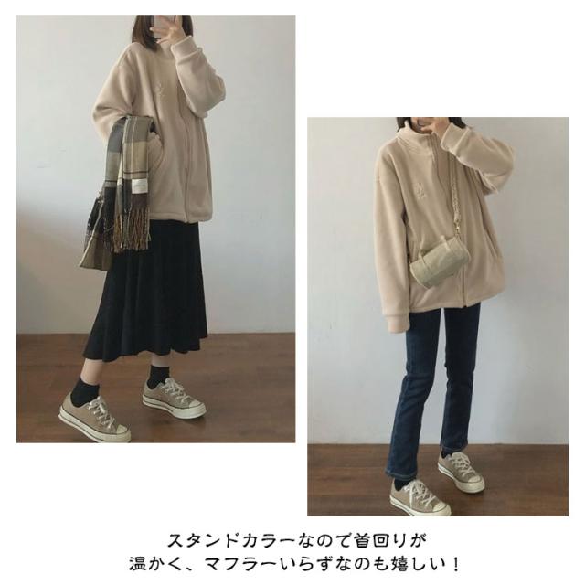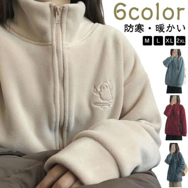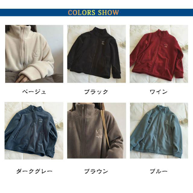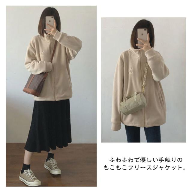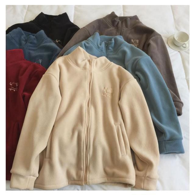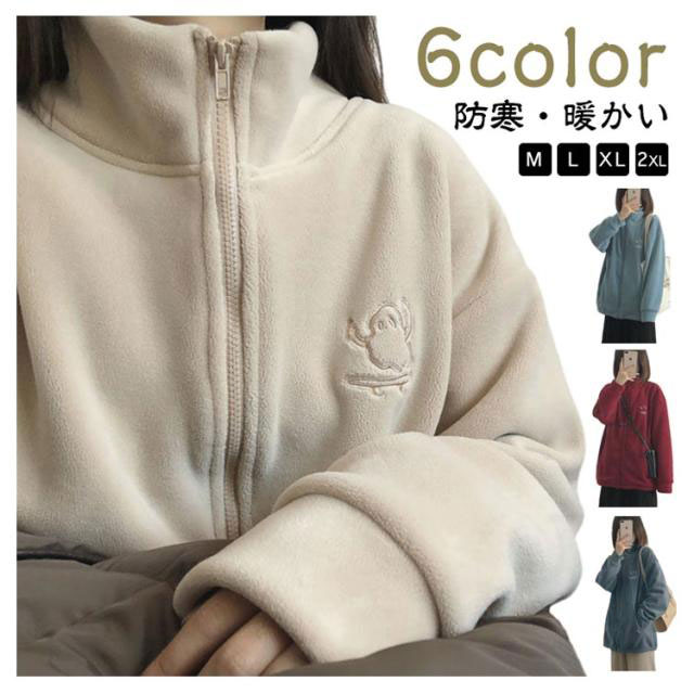 | 【6color】【防寒・暖かい】【M〜2XL】 ふわふわで優しい手触りのもこもこフリースジャケット。 ジップを上まで閉めてもきつさは感じません スタンドカラーなので首回りが温かく、マフラーいらずなのも嬉しい! 冬でもぽかぽかあたたかく快適に過ごせます。 | |