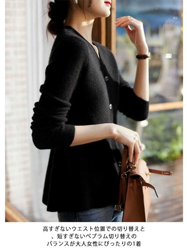 ペプラム ニット 羽織 カーディガン カーデ ペプラムトップス ペプラムカーディガン ペプラムニット 長袖 チュニック 前開き フェミニン ボタン フィット 暖かい ペプラム Aライン 美シルエット 華奢見え 送料無料 ブラック
