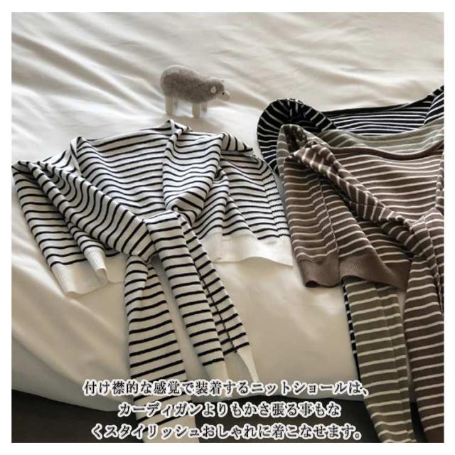レディース ボーダー柄 フェイクカーディガン ショール 肩掛けニット 肩かけニット カーディガン風 冷房 薄手 ボーダー柄 つけ襟 ストール 羽織り 小物 ストール 通勤 ニットショール トップス 送料無料 ホワイト ブラック ブラウン