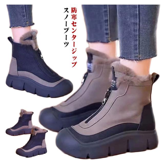 フロントジップ スノーシューズ 防寒靴 スノーブーツ 疲れない スノーブーツ 厚底 センタージップスニーカーブーツ ウインターシューズ ショートブーツ 靴 痛くない 歩きやすい ウインターブーツ 通学 通勤 あったか
