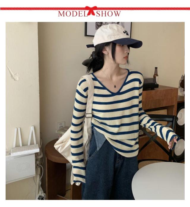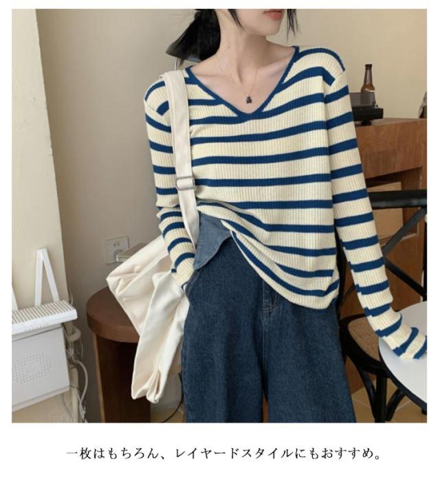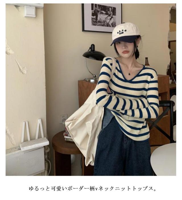 | 【S〜2XL】【3color】 ゆるっと可愛いボーダー柄vネックニットトップス。 一枚はもちろん、レイヤードスタイルにもおすすめ。 コーディネートの幅を広げてくれるおすすめの1枚です。 ゆるっとしたリラックス感を演出してくれる。 | |