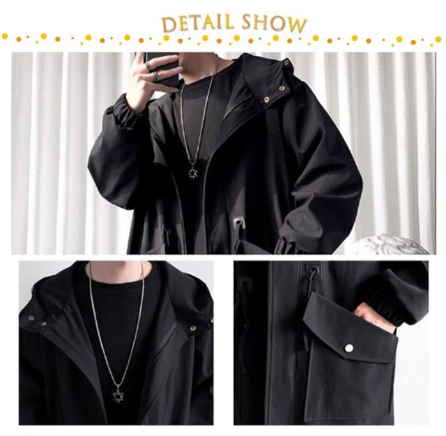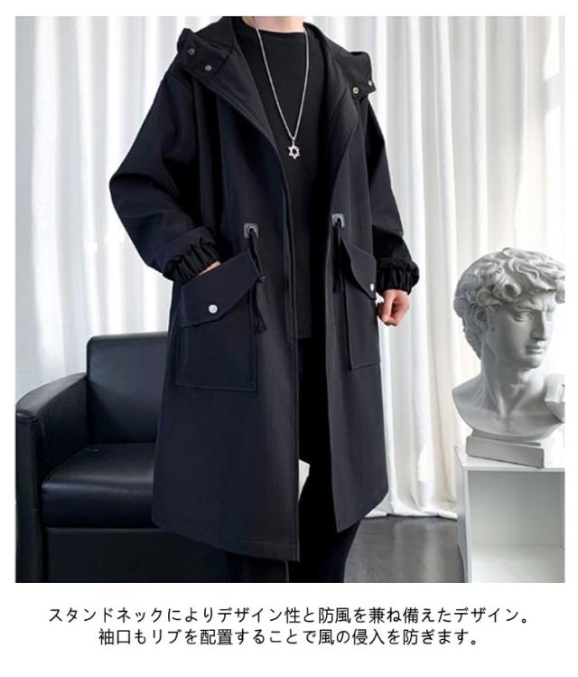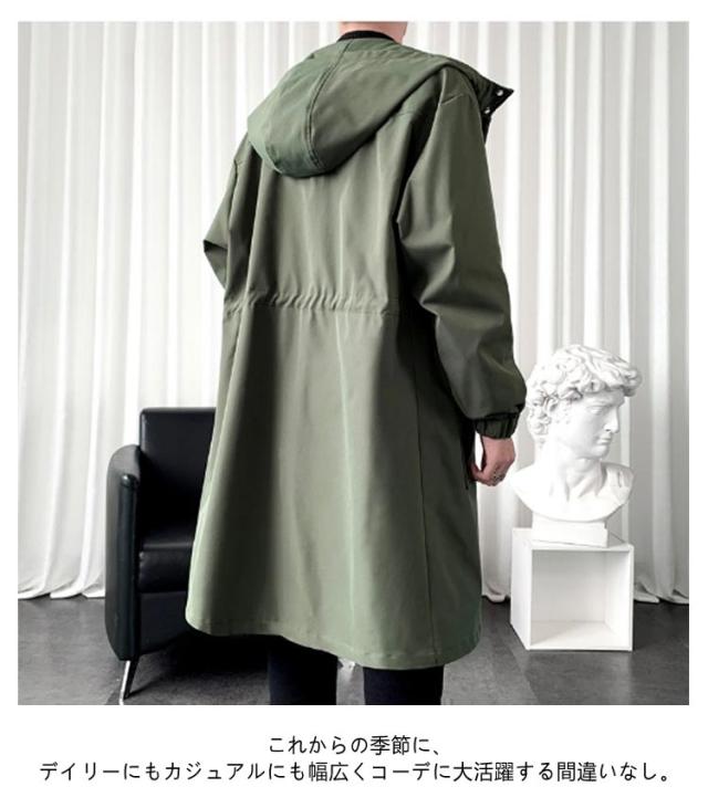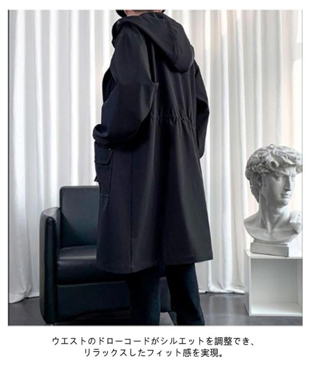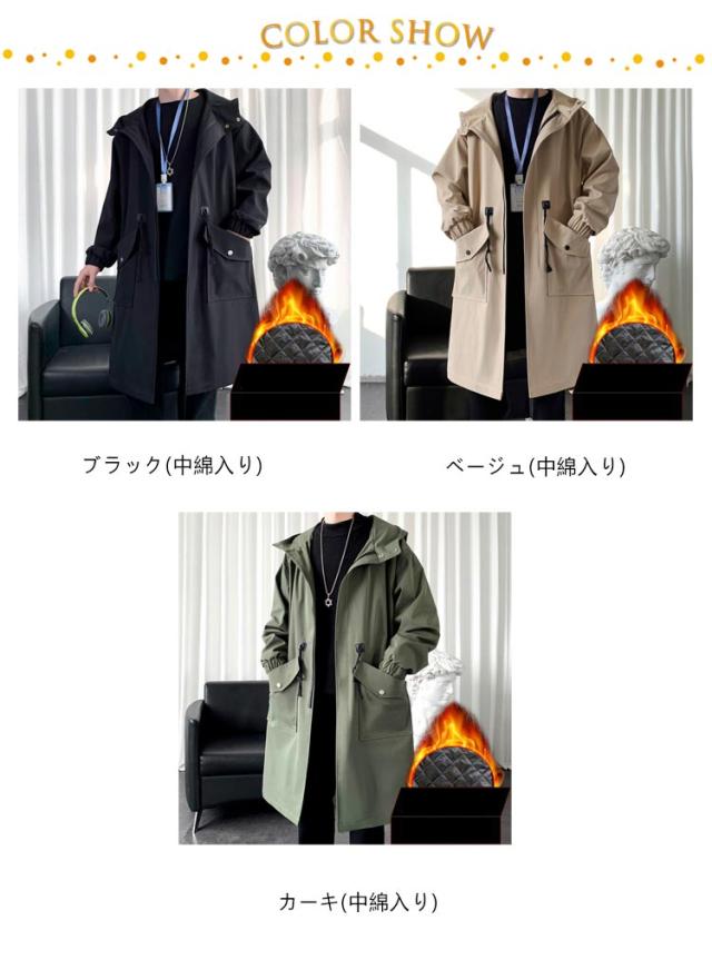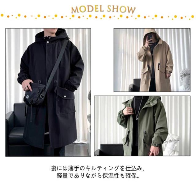 メンズ コート 秋冬 トレンチコート 中綿 厚手 ロング ミリタリーコート フード付き リブ袖 ドローコード モッズコート 秋 冬 アウター ロングコート ビッグポケット 無地 防寒 保温 暖かい 軽量 中綿コート 学生 通勤 通学 黒 カーキ 大きいサイズ 【送料無料】