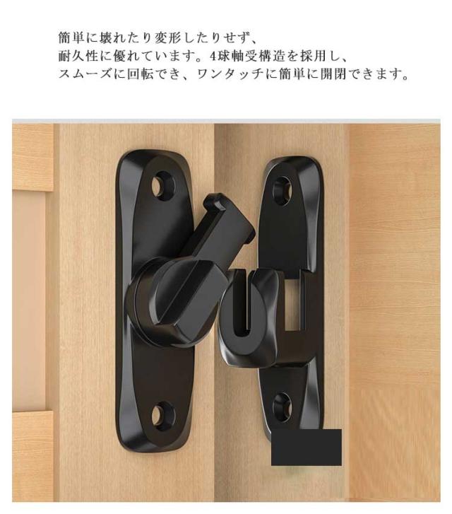 引き戸 後付け 穴あけ不要 ドアロック 90度/180度兼用 亜鉛合金 ドア留め金ロック ドアバックル 引き戸 引き戸 後付け 回転式 フリップラッチロック スライディングドア 取り付け簡単 鍵 ロック 耐震ラッチ 防犯 部屋 窓 玄関用