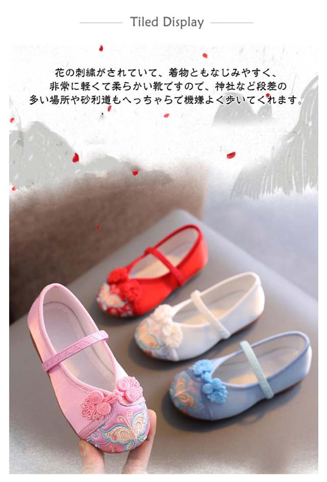 子供靴 バレエ靴 七五三 シューズ チャイナ靴 かわいい 七五三 コスプレ靴 発表会 キッズ 女の子 刺繍 子供 こども ジュニア用 布靴 ダンスシューズ 花柄 子供 靴 靴 コスプレ ステージ 結婚式 お正月 着物 柔らかい 履きやすい