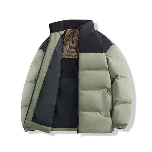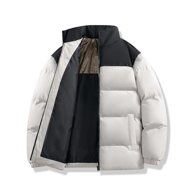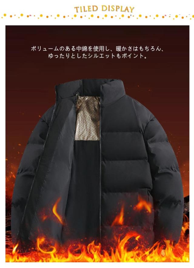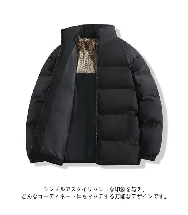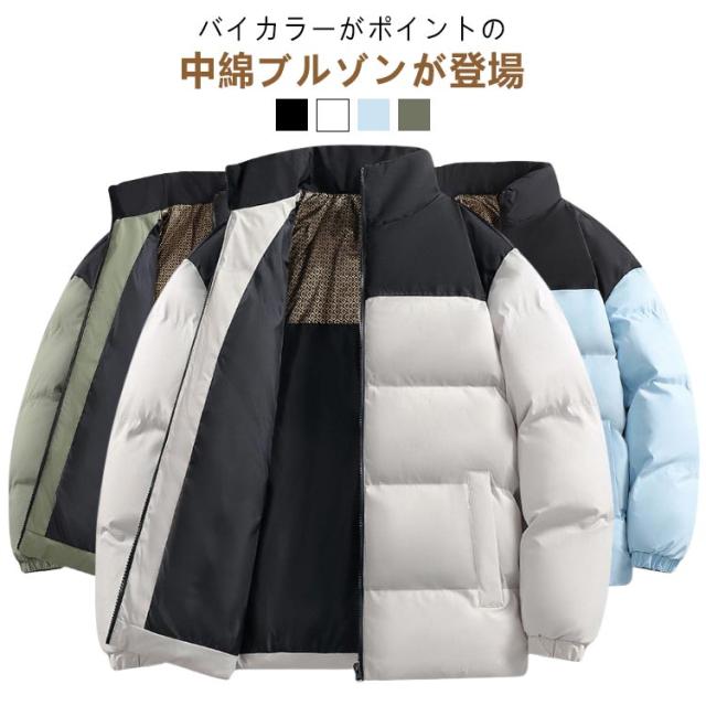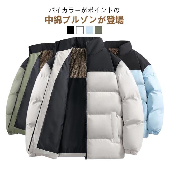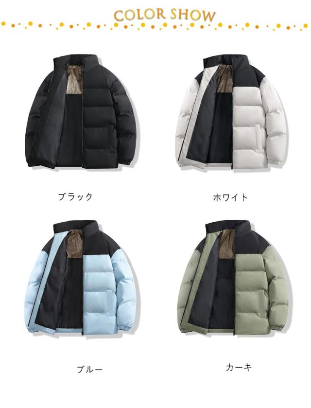 ダウンジャケット 立ち襟 配色 バイカラー 中綿ブルゾン メンズ レディース 中綿ジャケット フードなし ハイネック カジュアルジャケット 秋 冬 アウター 中綿 厚手 暖かい 軽量 撥水 発熱 保温 防寒 ゆったり 黒 白 カーキ 無地 シンプル 大きいサイズ 【送料無料】