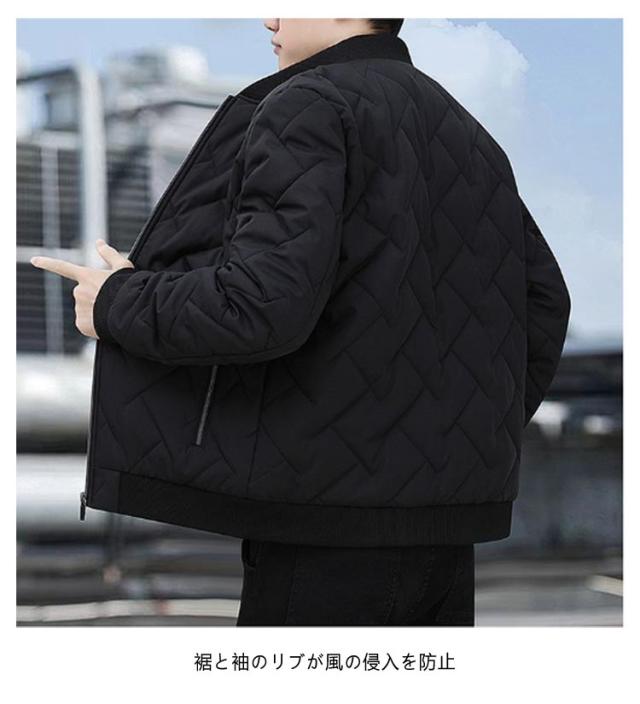 MA-1ジャケット 中綿 メンズ 中綿ジャケット MA-1 フードなし ノーカラー ジャケット キルティング コート 中綿ブルゾン 秋 冬 アウター 厚手 暖かい 軽量 保温 防寒 すっきり 細身 スリム 黒 紺 ネイビー 無地 大人 カジュアル 大きいサイズ 【送料無料】