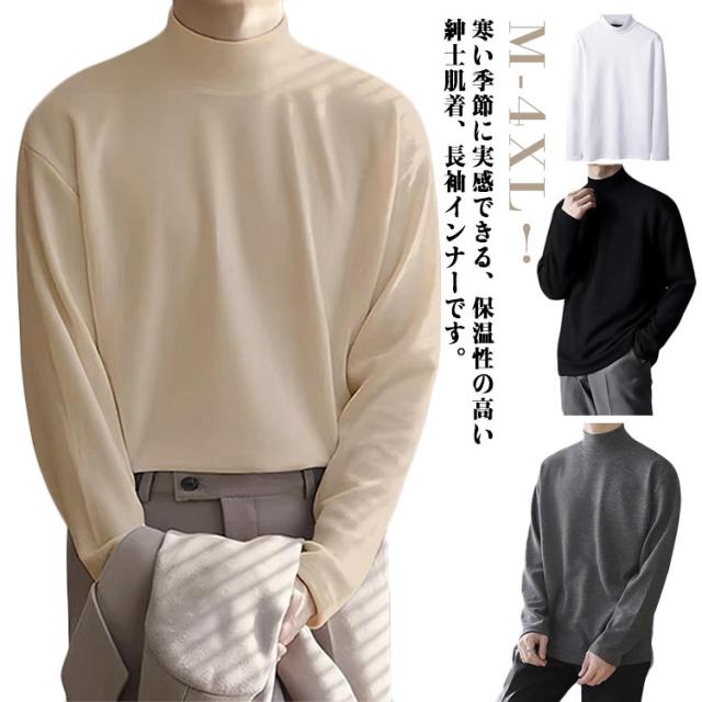 保温 インナーシャツ ロンT 吸湿発熱 インナー tシャツ ハイネック 両面起毛 ハイネック 防寒着 メンズ 肌着 あったか ヒートインナー あったかインナー 柔らかい ストレッチ トップス カットソー タートルネック 裏起毛 長袖 極暖 秋冬 インナー 大きいサイズ