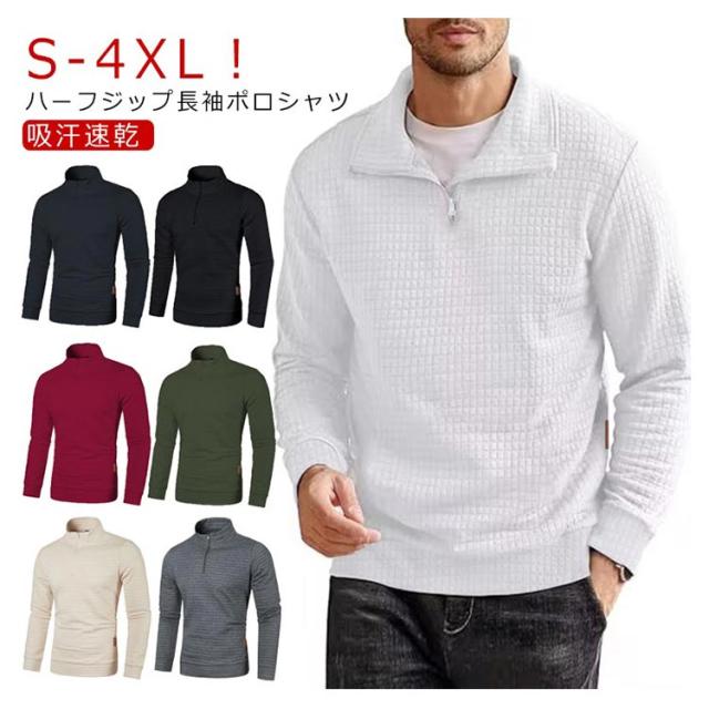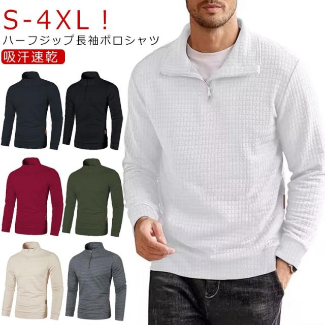 春 ポロシャツ トレーナー ハイネック ハーフジップ ストレッチ ゴルフウェア 作業服 長袖 長袖ポロシャツ 長袖 作業着 ワークウェア スポーツウェア ジャージ おしゃれ トップス 秋冬 吸汗速乾 防寒 無地 ゴルフシャツ