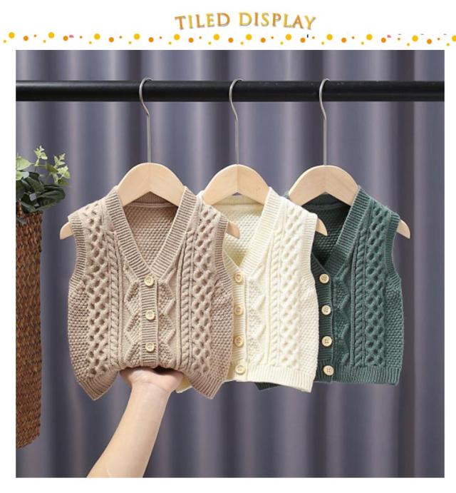 キッズ 子供服 ケーブルニット 可愛い 通学 男の子 前開き 冬 赤ちゃん ニットベスト Vネック ベスト ケーブル編み 秋 ニットトップス 70 シンプル 女の子 無地 通園 暖かい 防寒 保温 インナーベスト 柔らかい ベスト 80 90 100 110 120 130