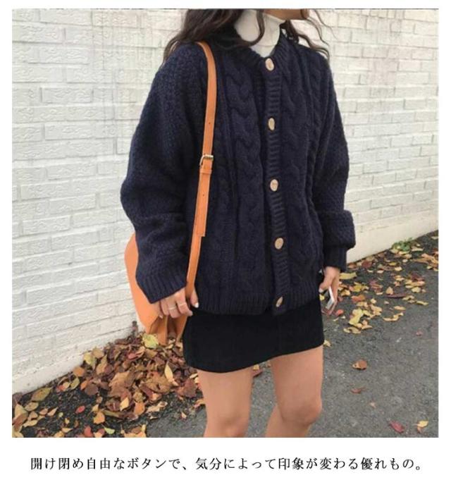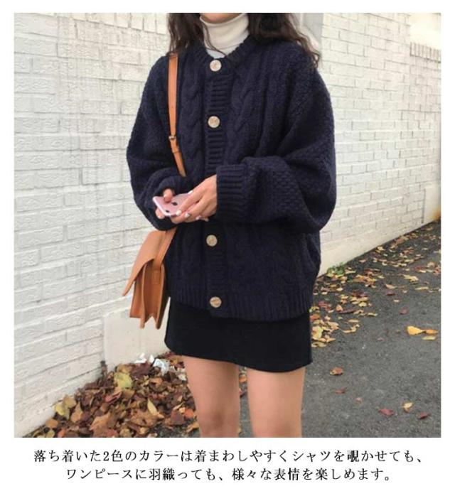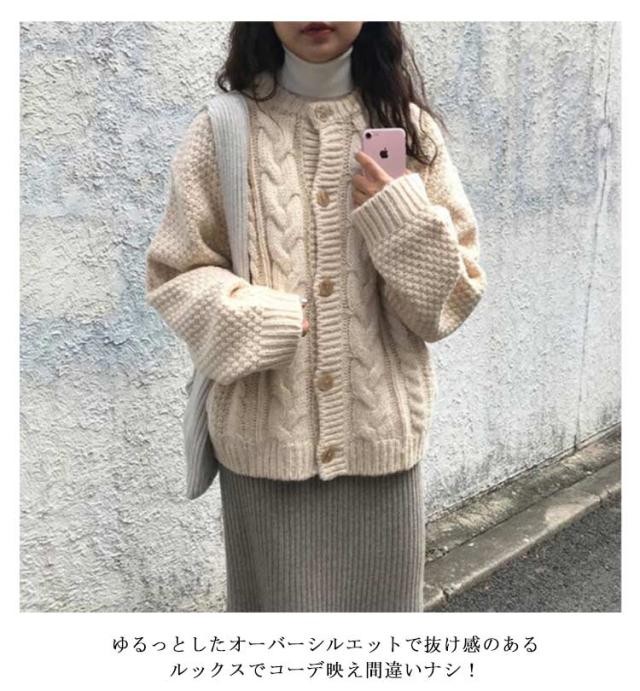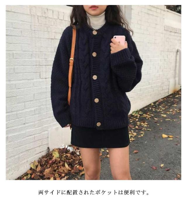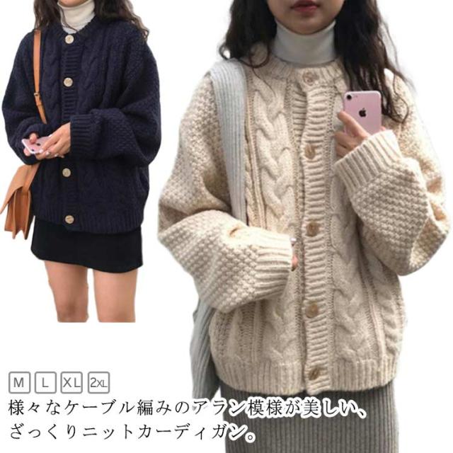 ニットカーディガン 丸首 秋 冬 20代 ケーブル編み ニット レディース カーディガン アウター 厚手 長袖 クルーネック 30代 ゆったり レトロ ヴィンテージ ポケット付き ニットトップス 40代 通勤 通学 カーデ ニットカーディガン 50代 大人 きれいめ おしゃれ