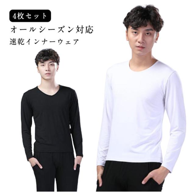 4枚組 インナーシャツ メンズ インナー あったか 防寒 肌着 長袖 Vネック Tシャツ アンダーシャツ 長袖V首 長袖Vネック 防菌 防臭トップス 冬物 冬 暖 保温 速乾 スポーツ 下着 肌着 ゴルフ