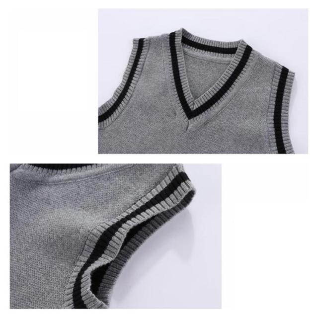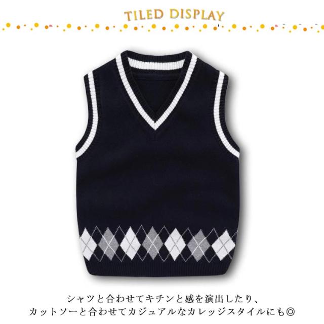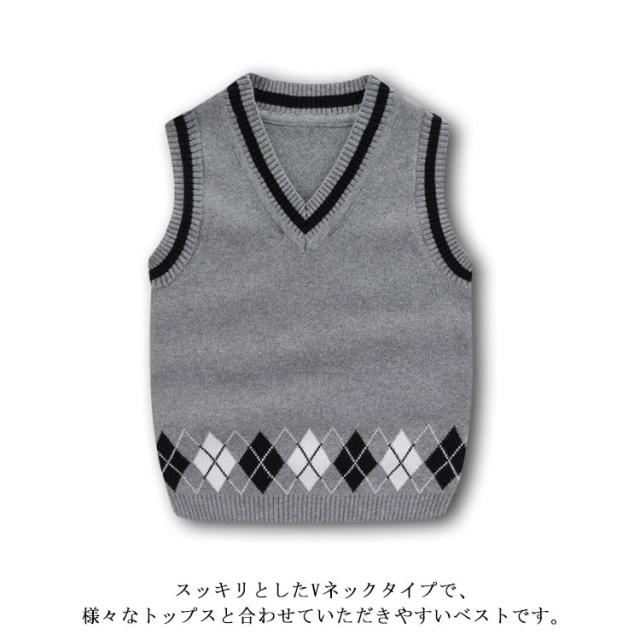 110 ニットベスト 女の子 Vネック 90 プルオーバー ベスト 男の子 ベスト キッズ 冬 ニットトップス アーガイル柄 ライン入り ジャガードニットベスト 可愛い 通学 通園 暖かい 防寒 保温 秋 100 140 120 130 ベスト グレー 黒 ブラック