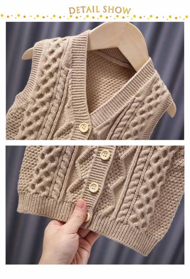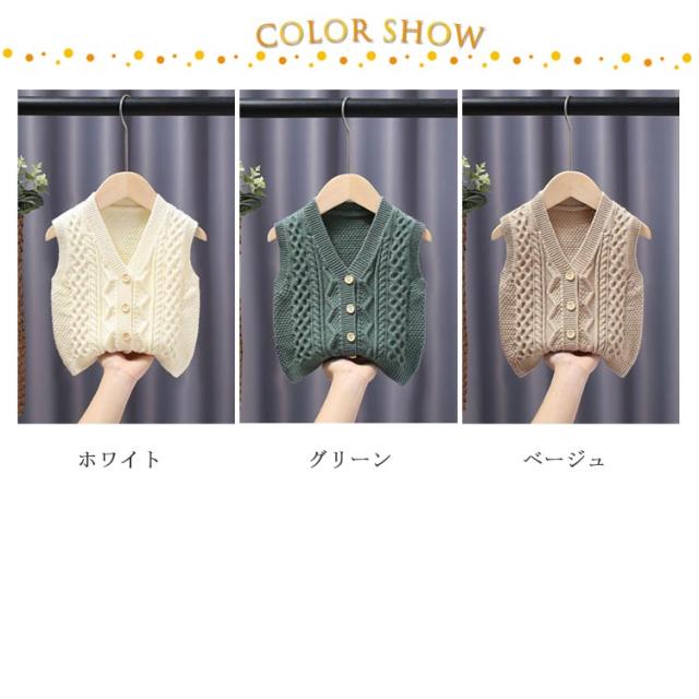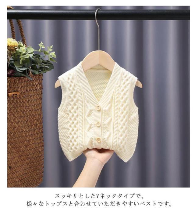 子供服 ベビー服 ベスト 秋 ベスト シンプル 暖かい 女の子 赤ちゃん ニットトップス 冬 ケーブル編み 前開き ケーブルニット 男の子 キッズ 80 可愛い 通学 通園 無地 防寒 保温 インナーベスト 柔らかい 70 ニットベスト 90 100 110 120 130