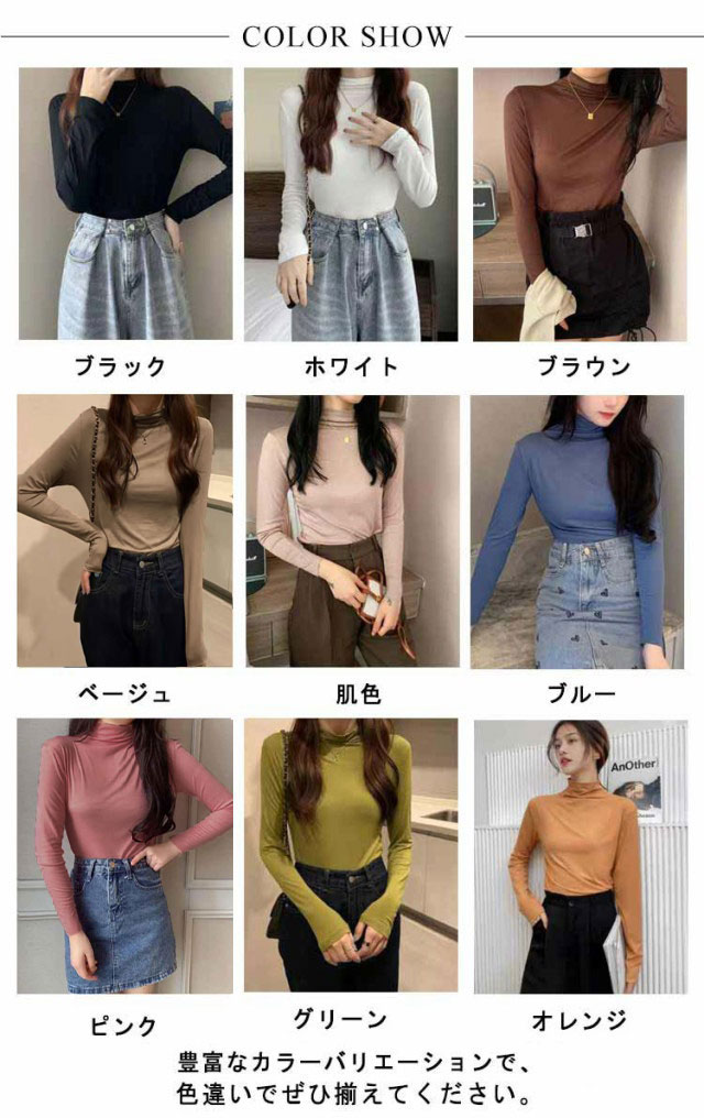 ハイネック インナー ハイネックシャツ レディース 薄手 ハイネック 長袖 インナー トップス 伸縮性 タートルネック カットソー シャツ ボトルネック 下着 肌着 アンダーウェア 送料無料 ブラック ホワイト ブラウン ベージュ 肌色 ブルー ピンク オレンジ グリーン