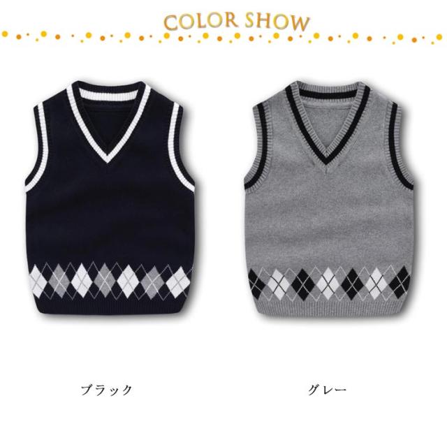 子供服 秋 ベスト ニットベスト ベスト Vネック 90 保温 男の子 ベスト 冬 ニットトップス キッズ ライン入り ジャガードニットベスト 女の子 可愛い 通園 110 防寒 暖かい 通学 100 アーガイル柄 120 130 140 グレー 黒 ブラック