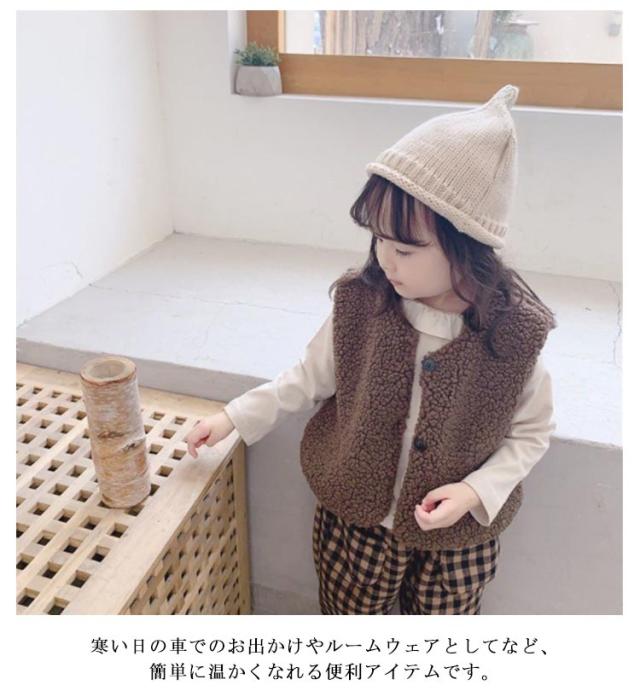 韓国 冬 ベスト キッズ 厚手 もこもこ ボアベスト クルーネック トップス 前開き 通学 暖かい ボアベスト 女の子 保温 子供服 羽織り アウター 可愛い ベビー服 通園 防寒 90 秋 インナーベスト 男の子 100 110 120 130 コーヒー アイボリー
