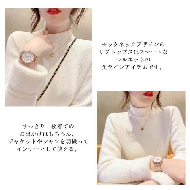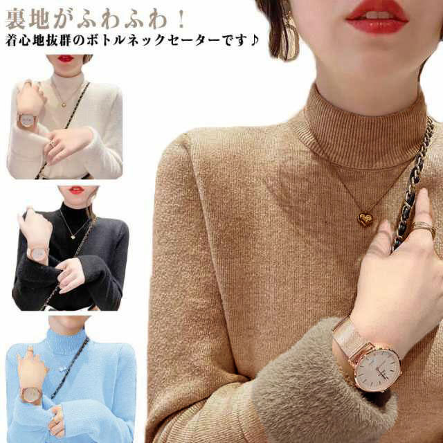 | 裏地がふわふわ!着心地抜群のボトルネックセーターです♪ 裏起毛でふわふわした触り心地がとっても気持ちいい モックネックデザインのリブトップスはスマートなシルエットの美ラインアイテムです。 毛足長めなシャギーのような裏起毛でとっても温かい。 すっきり一枚着てのお出かけはもちろん、ジャケットやシャツを羽織ってインナーとして使える。 | |
