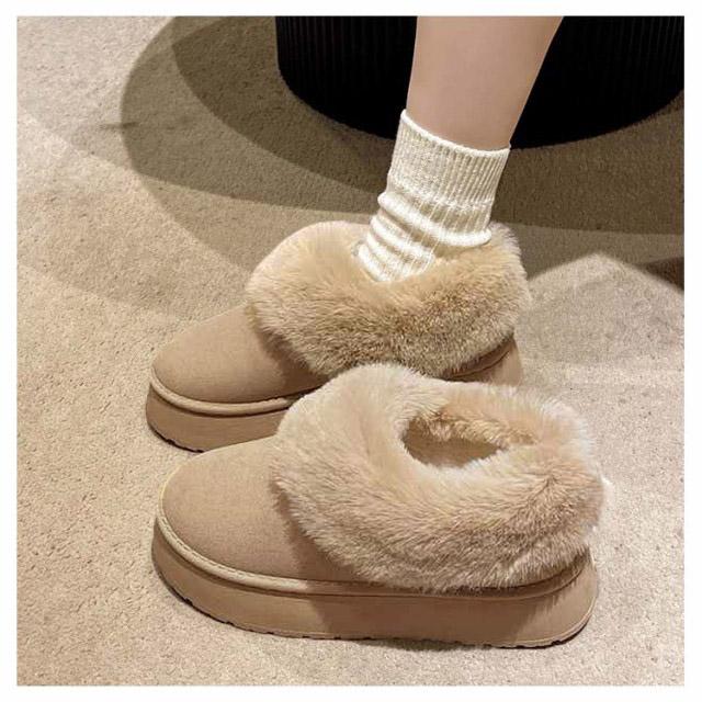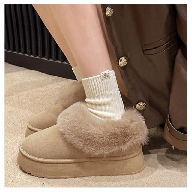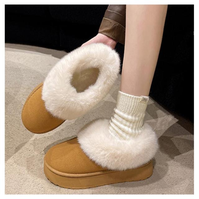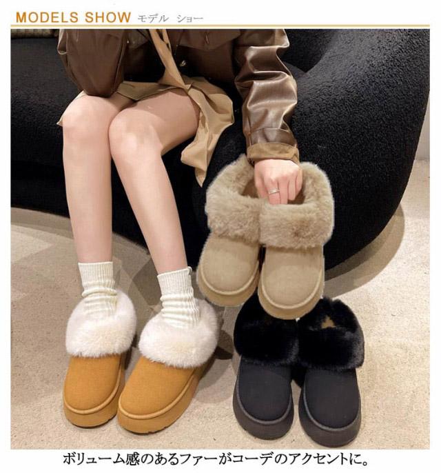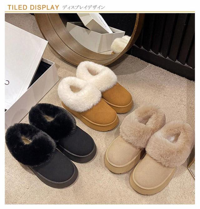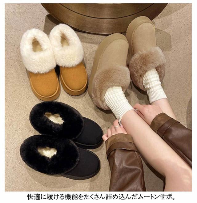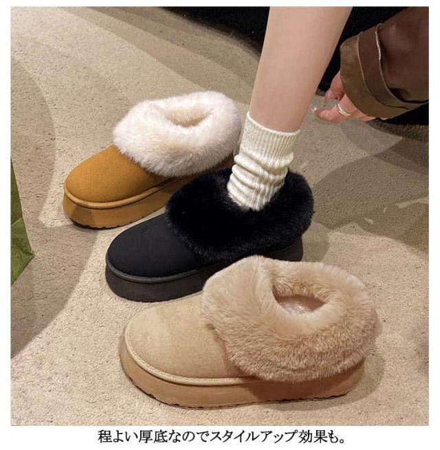 ムートンブーツ ショート ムートン ブーツ 4.5cmヒール ムートン スリッポン レディース 厚底 歩きやすい 暖かい 防寒 防滑 疲れない 軽量 ファー ボア もこもこ あたたかい おしゃれ かわいい ムートンブーツ ショート 秋 冬 雪 靴 送料無料