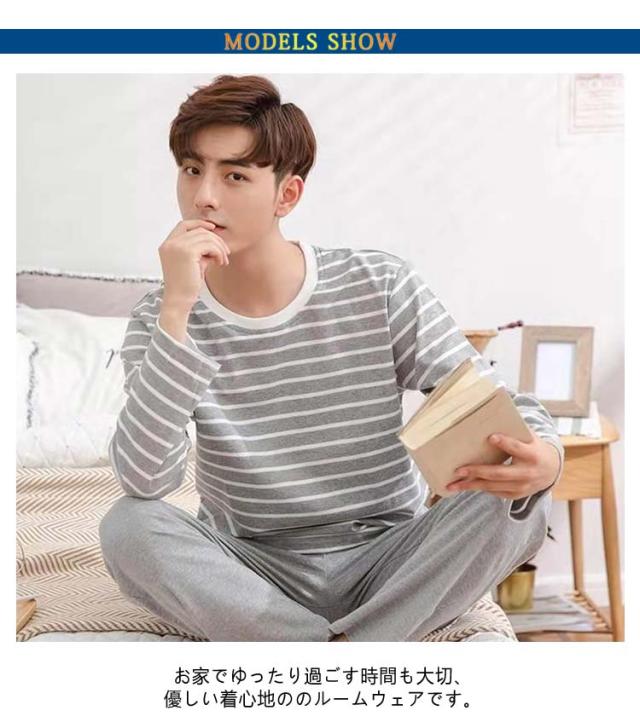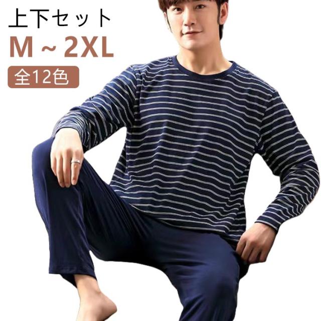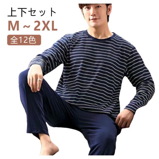 ルームウェア メンズ 上下セット パジャマ 長袖 春 秋 プルオーバー ボーダー柄 シンプル 長ズボン ナイトウェア セットアップ 寝巻き 部屋着 寝間着 柔らかい 父の日 ギフト 敬老の日 プレゼント パンツ リラックス トップス 楽ちん