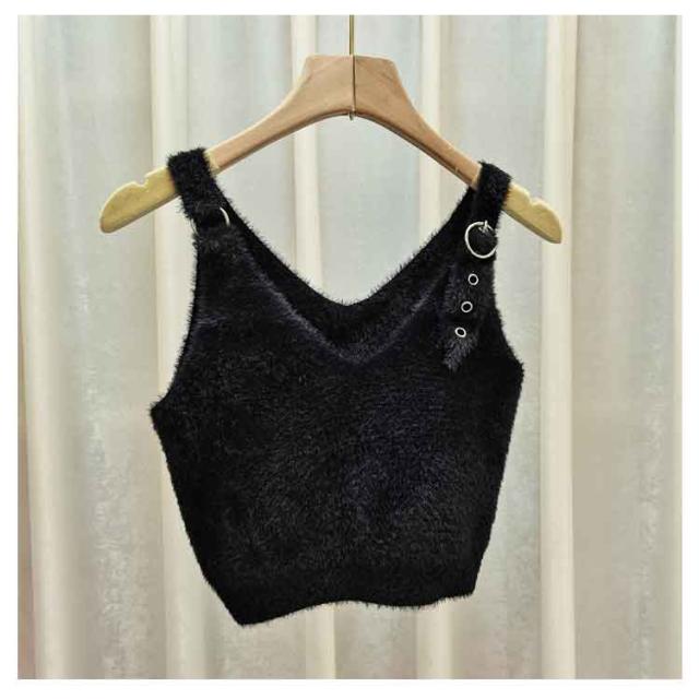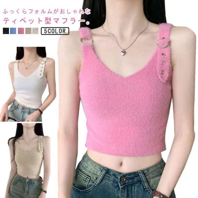 | もこもこニット素材で仕立てたキャミソール。 ショート丈のタイトシルエットで美ボディライン。 単品一枚でもインナーとしても使えます。 | |