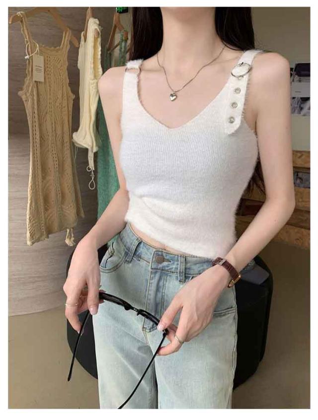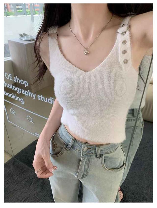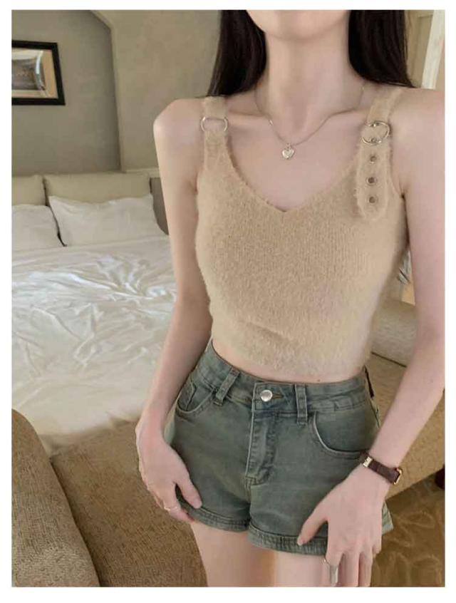 ニットキャミソール レディース ショート丈 ニット トップス 起毛感 ビスチェ キャミソール ノースリーブ ニットベスト レイヤード ニットビスチェ 無地 おしゃれ 春 夏 秋 冬 送料無料