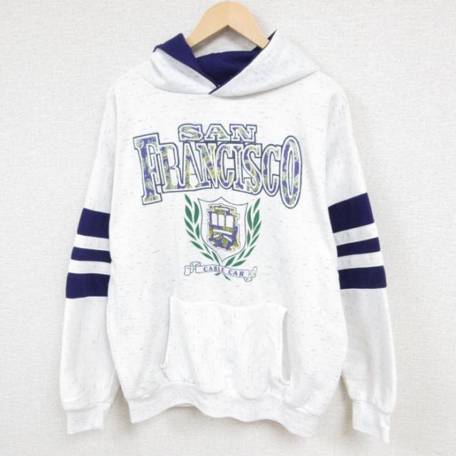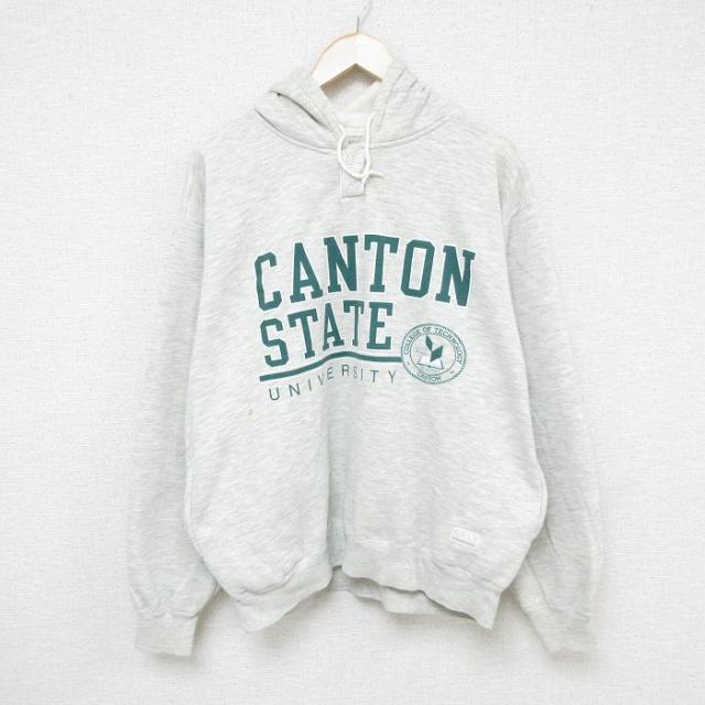古着 長袖 スウェット パーカー メンズ 90年代 90s カントン 大学 大きいサイズ 薄グレー 霜降り XLサイズ 中古 スエット トレ 中古 古着