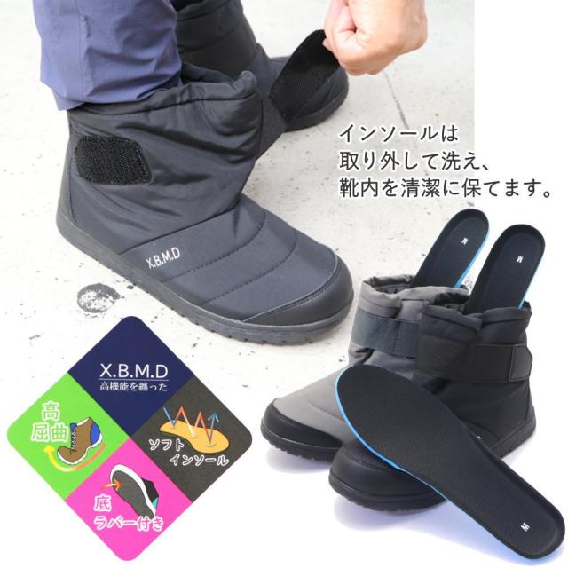 即納 「アウトレット」 メンズ ダウンブーツ 防滑 屈曲 ソフトインソール ミドルブーツ マジックテープ No.1394