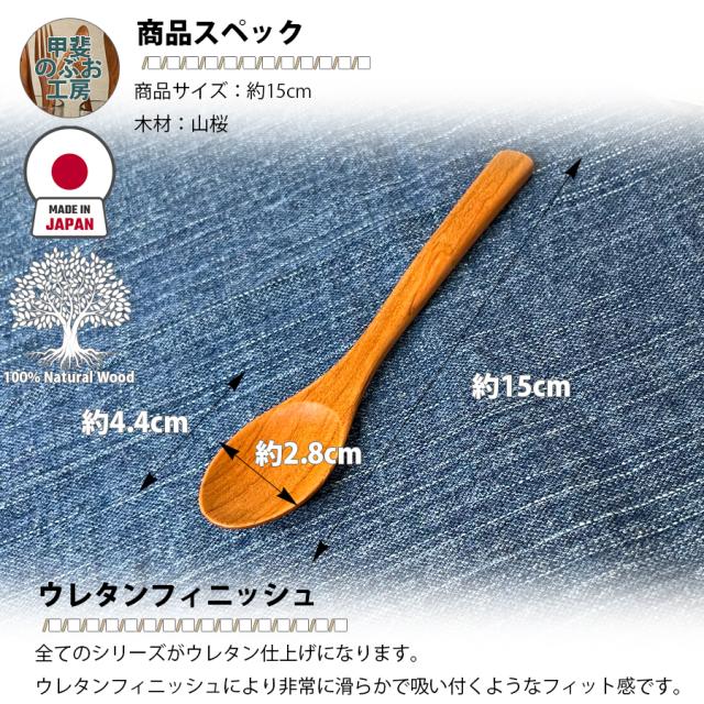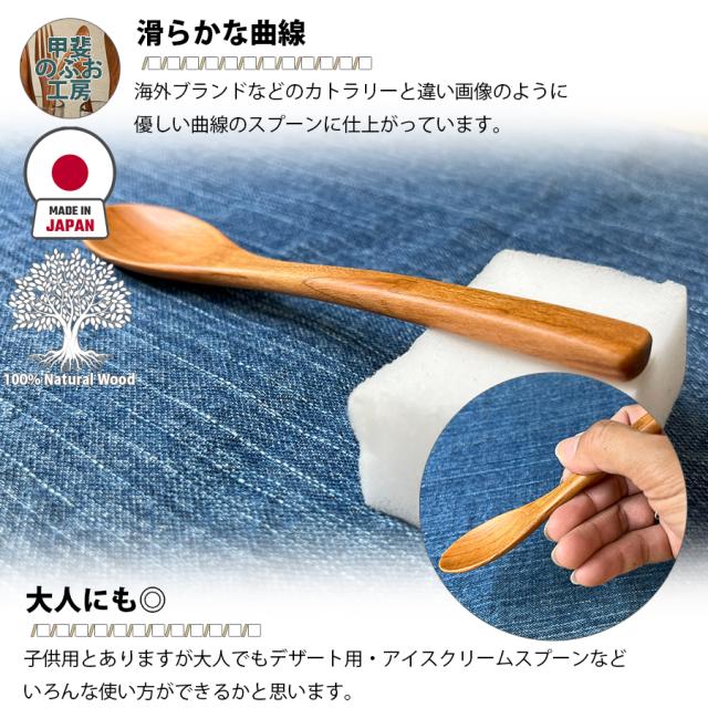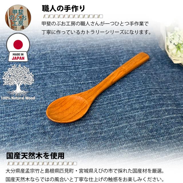 甲斐のぶお工房 日本製 木製 スプーン 15cm カトラリー 職人 手造り 持ちやすい 国産木 天然木 カフェ 飲食店 喫茶店 居酒屋 来客用 子供用 優しい 口当たり キッチン用品 台所用品 キッチンツール デザートスプーン 食器 シンプル おしゃれ 大分県 湯布院 区分N KN-001-YS