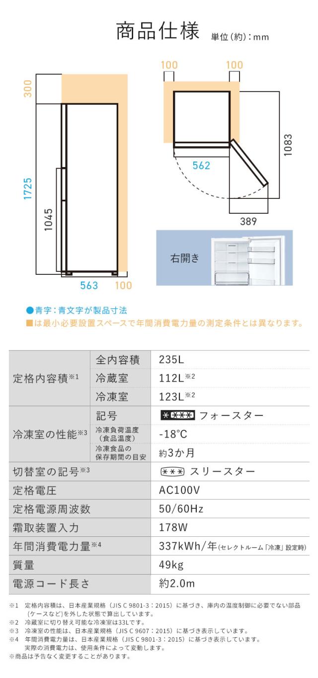 冷蔵庫 ひとり暮らし 3ドア 大容量冷凍室 ソフト冷凍 冷凍冷蔵庫 235L 自動霜取り ホワイト ブラック 二人暮らし アイリスオーヤマ IRSN-HF24A * 送料無料 設置無料 【HS】