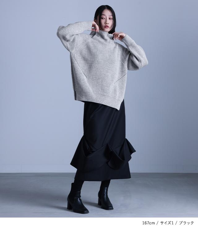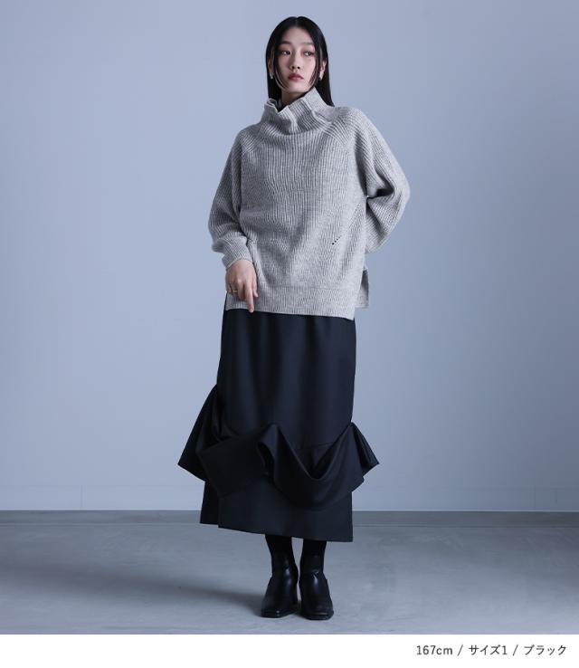 ■デザイン 裾にボリュームのあるドレープを施したナロースカート。切り替えたパーツをランダムに見えるように高さを変えて、本体に縫い留めたこだわりのデザインです。左側のファスナーと、バックウエストゴムで綺麗なシルエットながらラクに穿いていただけます。 ■コーディネート ひとクセありながらもシンプルなデザインなので、スタイリングに合わせやすいスカート。シンプルなトップスを合わせてスカートを引き立たせたり、モードな変形アイテムと合わせてかっこよく決めるのもおすすめです。スウェットやスニーカーと合わせてカジュアルダウンしてもお洒落に決まります。 ■素材 キレイめで上品な印象の、さらりとした程良い厚みのスーツ生地。安心の裏地付きで、ロングシーズンでお洒落を楽しめます。 |