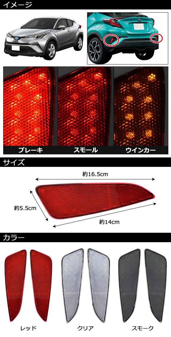 LEDリフレクター トヨタ C-HR NGX50/ZYX10 全グレード対応 2016年12月〜2023年07月 スモークレンズ 3段階点灯 26連 入数:1セット(左右) AP-RF337-SM