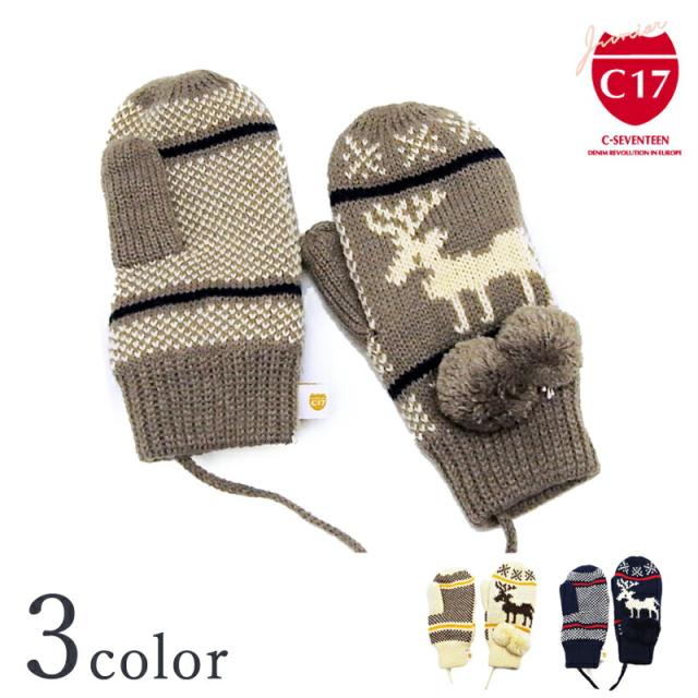 C17 Jr シーセブンティーン ジュニア キッズ ニット ミトン C708 子供用 女の子 防寒 グローブ 手袋 トナカイ プレゼント ギフト