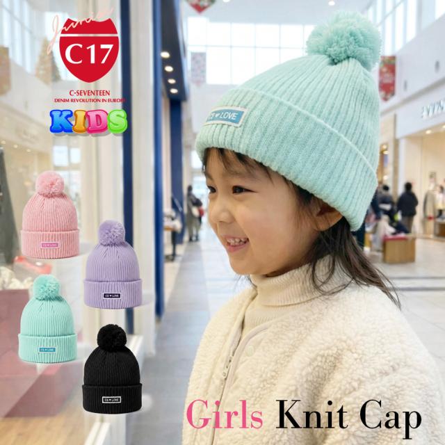 C17 Jr キッズ ニット帽 リブニット ポンポン付き CD080 ロゴ シーセブンティーン ジュニア ニットキャップ ワッチ プレゼント ギフト