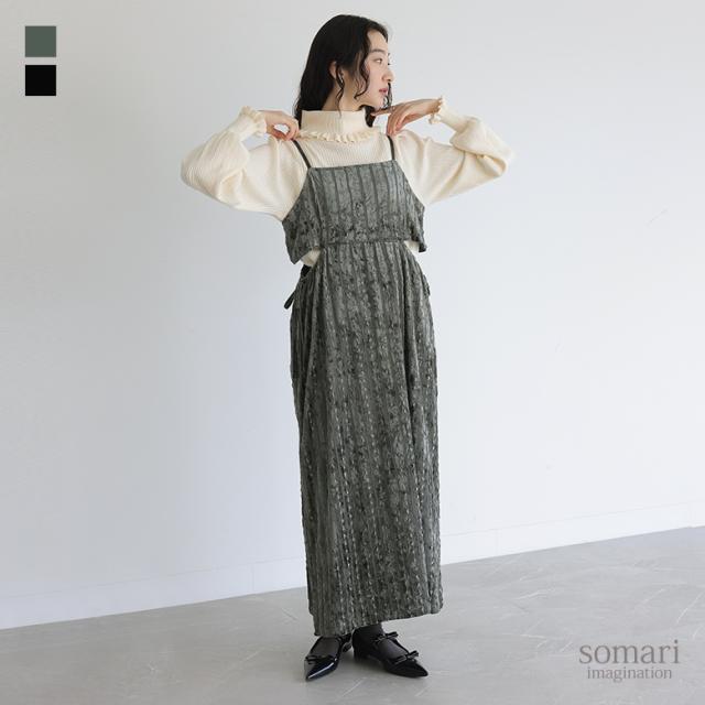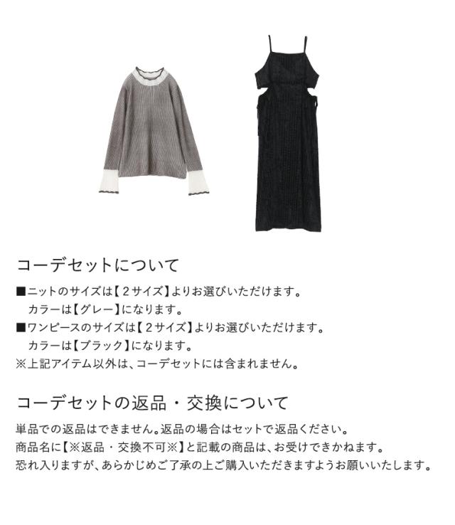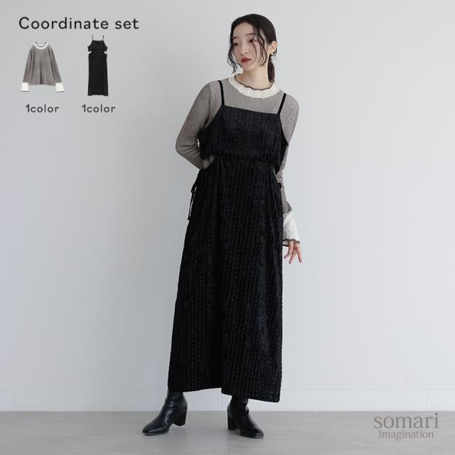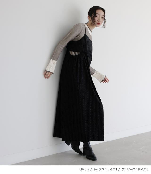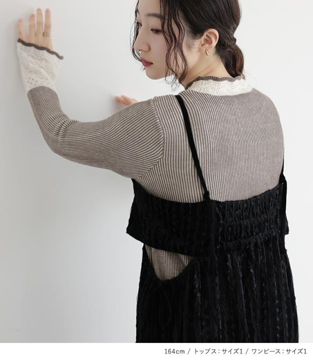 【送料無料】『配色畔編みニット×レーステープベロアキャミワンピースコーデ2点SET』【メール便不可】【50】[2点コーデセット 2024 レディース ニット トップス セーター キャミワンピース ドレス ワンピース]