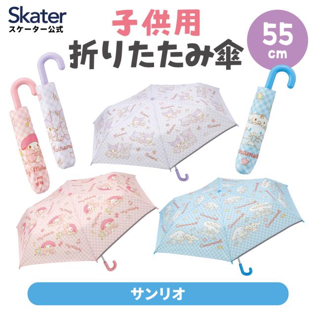 折りたたみ傘 キッズ 傘 55cm 手開き 折りたたみ 子供用 子供 小学生 スケーター skater UBOT55C マイメロディ クロミ シナモロール サンリオ 女の子 女子【グラスファイバー ネームタグ キャラクター 折り畳み傘】