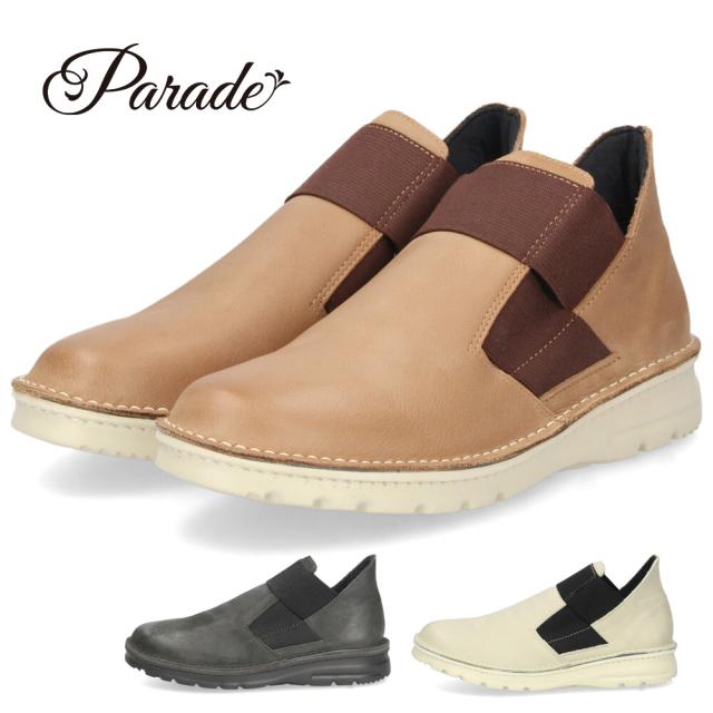 スリッポン レディース 疲れにくい はっ水 本革 幅広 ゆったり 日本製 コンフォートシューズ 4E 軽量 靴 ブラック 黒 キャメル アイボリー 7307 パレード Parade