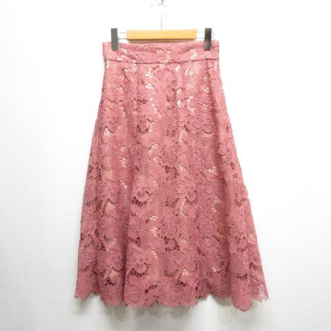 【中古】プロポーション ボディドレッシング メッシュフラワーケミカルレース フレア スカート 刺繍 M ピンク 裏地付