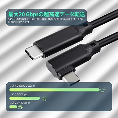 USB 3.2 Type C ケーブル L字 20cm 20Gbps転送 100w急速充電 4K@60Hz映像出力 PD3.0 QC3.0対応 タイプc ケーブル MacBook MacBook Pro iPad Pro Nintendo Switch Xperia Galaxy Google Pixel等Type-C機種対 超高耐久 送料無料