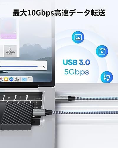 【10Gbps高速データ転送】USB 3.1タイプCとUSB 3.0 Micro Bを接続で、SSDよりデータを転送する際に、最大10Gbpsの超高速転送とデバイスへの安定した接続を体験してください。(従来の外付けHDDの場合、最大5Gbpsの転送スピードが可能です。)