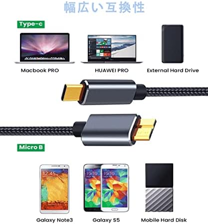 【福広い互換性】USB Type C−Micro Bケーブルは東芝Canvio、シーゲイトFreeAgent、WD My Passport、Elements、Maxtor M3, Samsun M3 SSD, Integral Portable SSDなどとの互換性があり、また、Samsung S5 / Note 3、Nokia Lumia 2520、Nikon D800 / D800E、Canon EOS 5DS / 5DSR / 5D4カメラなどのスマホやカメラへのデータの同期と充電をサポートします。