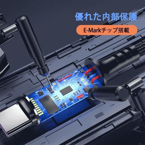 【安全且つ高速充電】公式に認定されたスマートチップを使用する、56kΩレジスタの実装によりデバイスを短絡、過充電、過熱などから高安全保護します、最大60W 3A/20Vの出力が対応しているため。ケーブルが溶けたり、デバイスが損傷したりすることはもうありません。