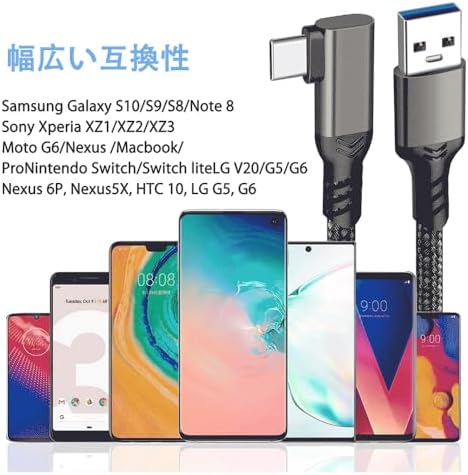 USB Type C ケーブル L字 USB-A to USB-C ケーブル 10Gbpsデータ転送 60W急速充電 USB3.2 Gen2標準 PD対応 タイプc ケーブル Nintendo Switch Xperia AQUOS Galaxy Pixel等Type-c機種対応 (1m)
