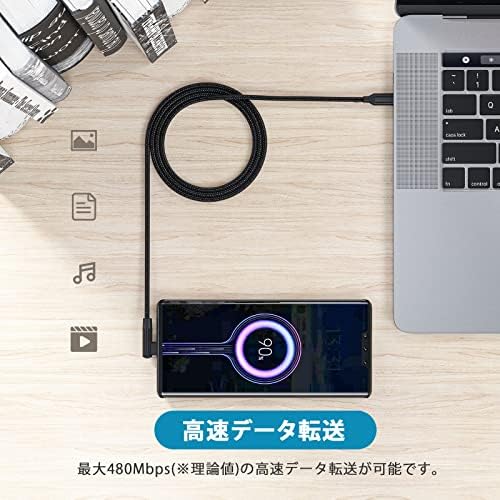 USB-C ケーブル L字型 60W 3A 急速充電 USB2.0規格 PD対応 高耐久ナイロン Type C (USB C to USB C) ケーブル 200cm ショート Type C to Type C ケーブル Xperia Galaxy Sharp LG MacBook MacBook Pro iPad Pro Nintendo Switch Google Pixelなどタイプc多機 ...