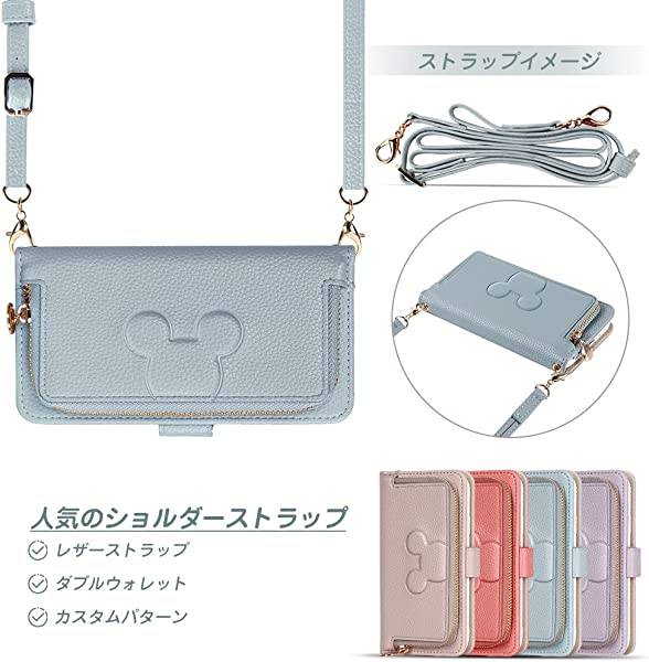 【多機能なデザイン】ショルダーストラップケースの裏にカード入れ二つと表にファスナー付きポケット1つ付きます。お札や名刺、運転免許など収納可能。スタンド機能は長時間の動画視聴にもハンズフリーで楽しめます!