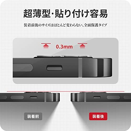 高品質素材製:強化ガラスを使用し、硬度は9Hの高硬度なので、ナイフや鍵などの尖ったものでも簡単には傷がつきません。カメラレンズ全面を守り、バッグやポケットの中で付いてしまう引っかき傷に対して高い耐性を持ちます。また、飛散防止設計により、万が一割れてしまっても、破片が飛散しなくなる保護フィルムです。
