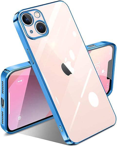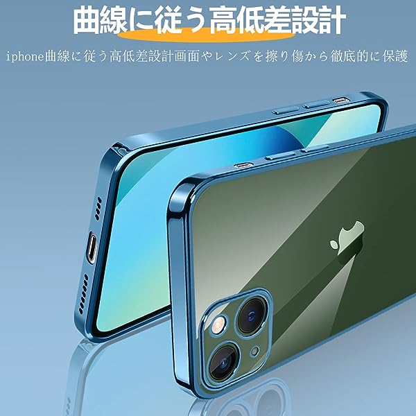 iPhone13 mini ケース クリア 透明 耐衝撃 アイフォン13mini カバー メッキ加工 ワイヤレス充電 薄型 ソフト 軽量 TPU 変色防止 ファッション ソフトケース おしゃれ かわいい メンズ レディース スマホケース スマホカバー シンプル 大人 保護カバー(ブルー) 送料無料