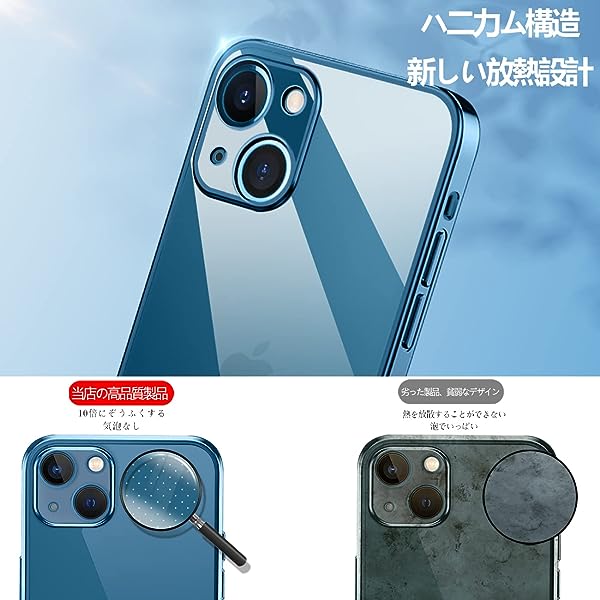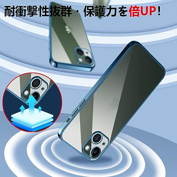 iPhone13 mini ケース クリア 透明 耐衝撃 アイフォン13mini カバー メッキ加工 ワイヤレス充電 薄型 柔らかい 軽量 TPU 変色防止 ファッション ソフトケース 人気 保護カバー(ブルー)