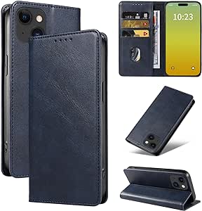 iPhone15 ケース スマホケース 手帳型 携帯カバー レザー 耐衝撃 軽量 着脱しやすい 放熱性 マグネット式 カード収納 スタンド機能ケース アイフォン15 ケース 対応 360度保護 (iPhone15, ネイビー)