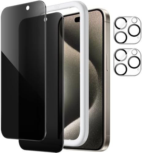 iPhone15ProMax 保護フィルム プライバシー保護 フィルム+カメラレンズフィルム 覗き見防止 強化ガラスフィルム 6.7インチ用(15 Pro Max) [ガイド枠付き 2枚+2枚セット] 送料無料